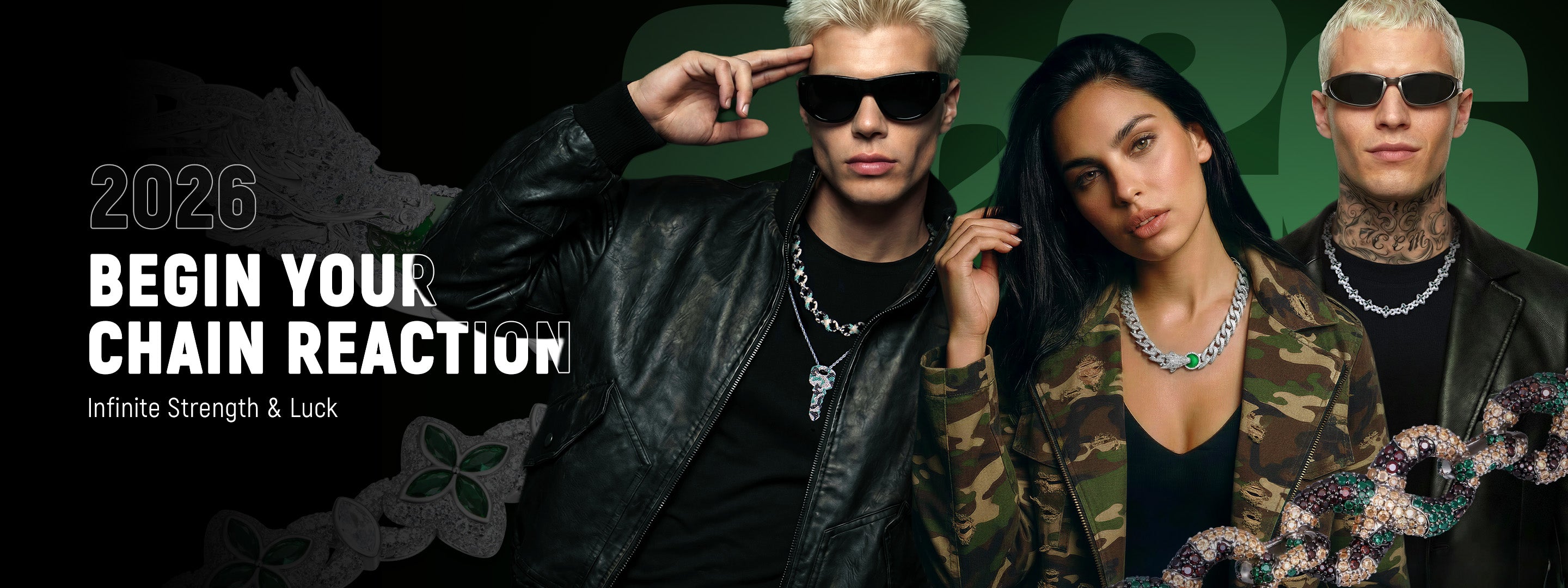 Iced Luminous Clover Necklace & Wallet Chain
