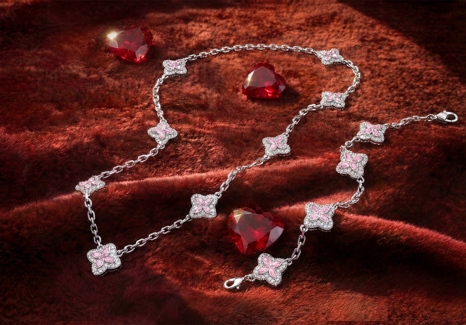 Iced Luminous Clover Bracelet & Earring Set - White Diamond