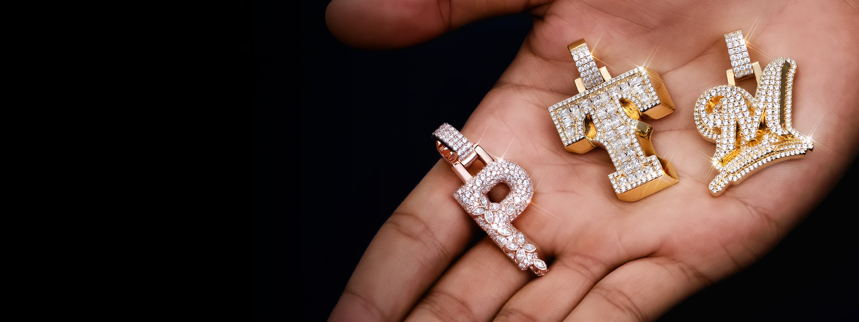 Custom Moissanite Gothic Font Pendant - 15mm Height