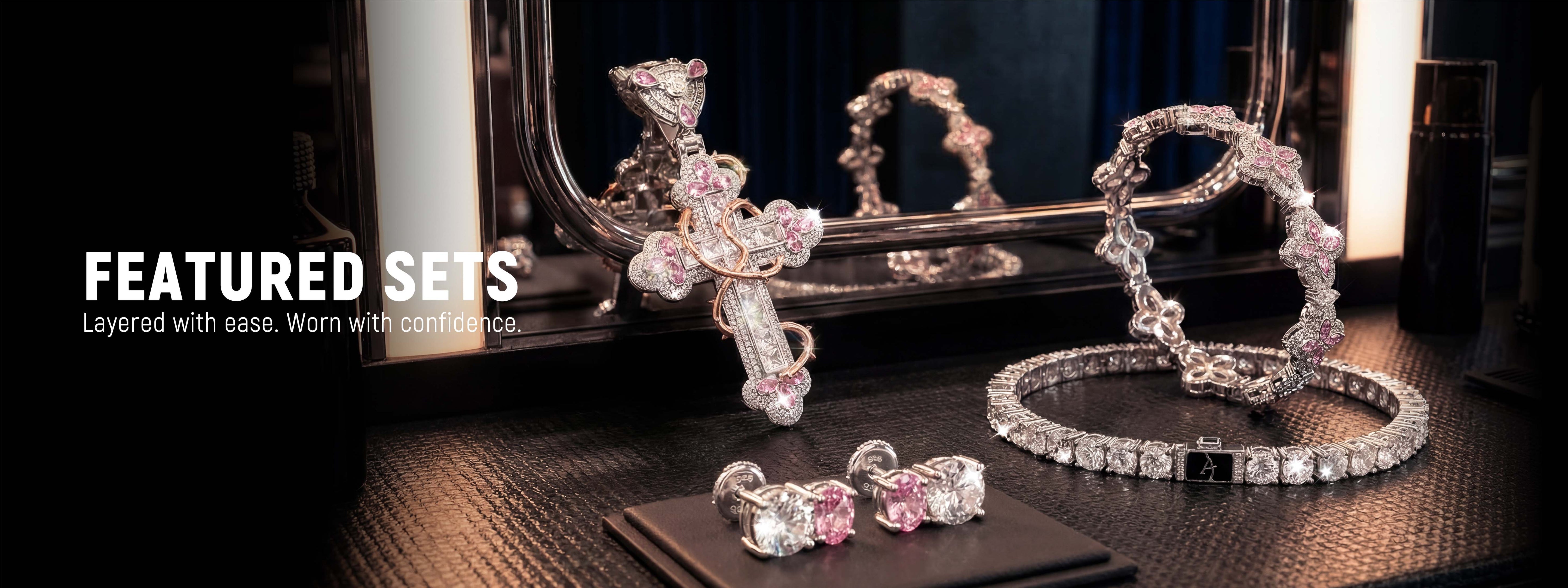 Sweet Edge Iced Chain & Earring Set