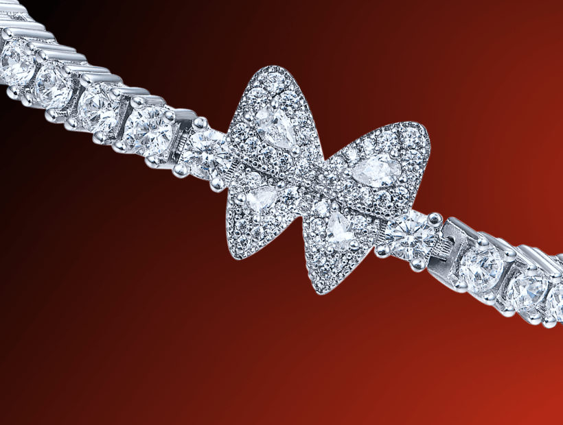 Vivid Round Cut Clustered Butterfly Cuban Armband - 8 mm
