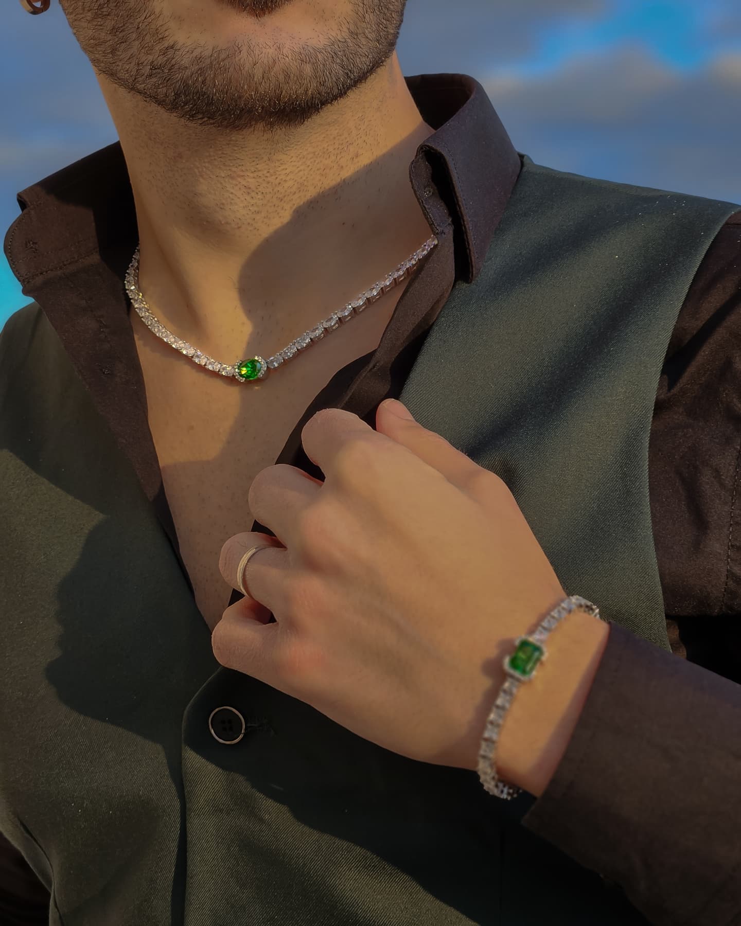 Collier de tennis ovale sur glace écrasée - Gris bleu