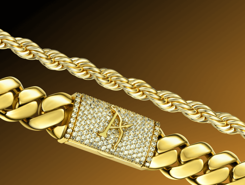 Pour les pendentifs de moins de 5 cm de hauteur, nous recommandons de les associer à des chaînes de moins de 5 mm de large, comme une chaîne torsadée, une chaîne tennis ou une chaîne Miami. Si votre pendentif mesure environ 6 cm de hauteur, optez pour des chaînes de 6 à 12 mm de large, comme une chaîne cubaine, une chaîne boule ou d'autres modèles audacieux. Le choix dépend de votre style. En cas de doute ou de besoin de conseils, n'hésitez pas à nous contacter.