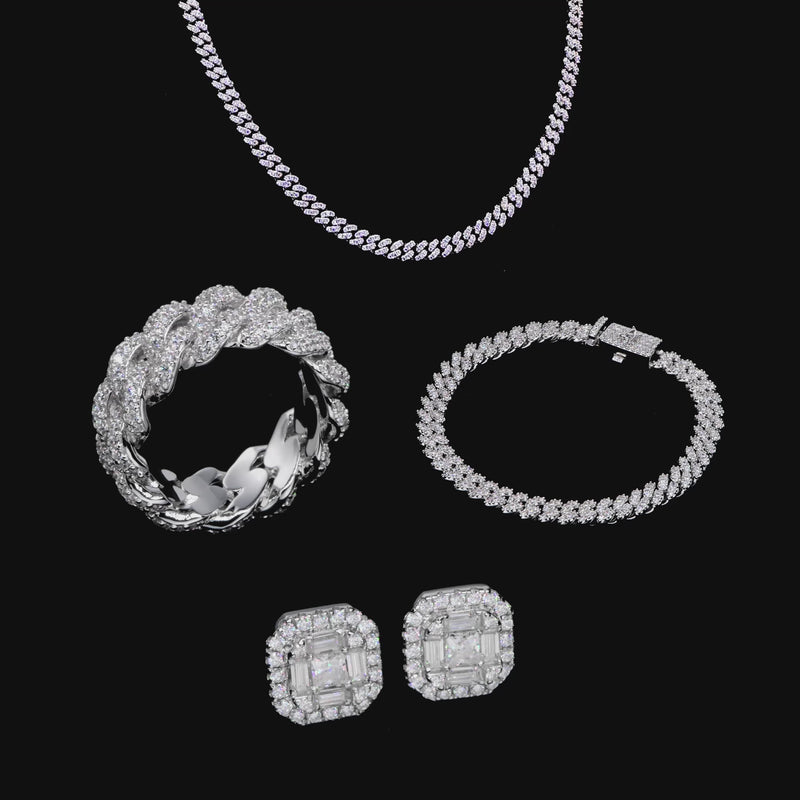 Prong Catena cubana e braccialetto e set regalo con anello cubano