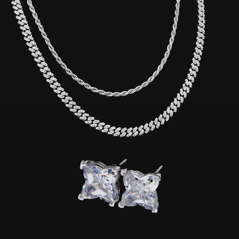 Anello di trifoglio luminoso ghiacciato e set di bracciale + collana da agyin da ghiaccio
