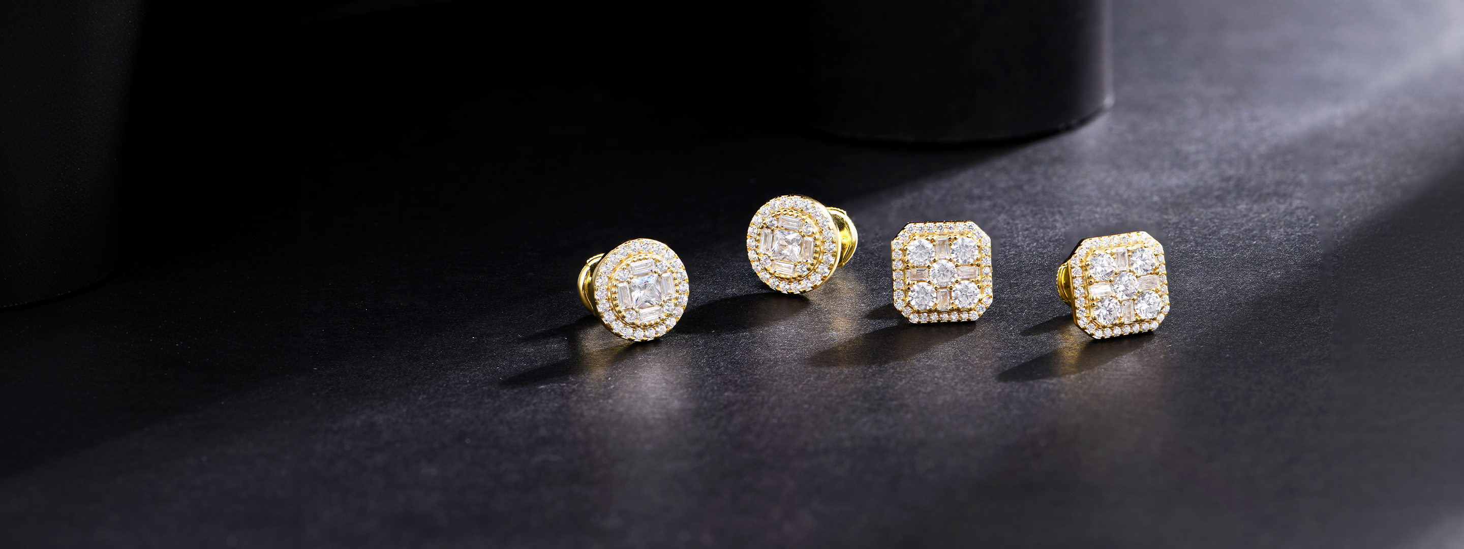 Octagon Baguette Mix Halo Stud Earrings - Single